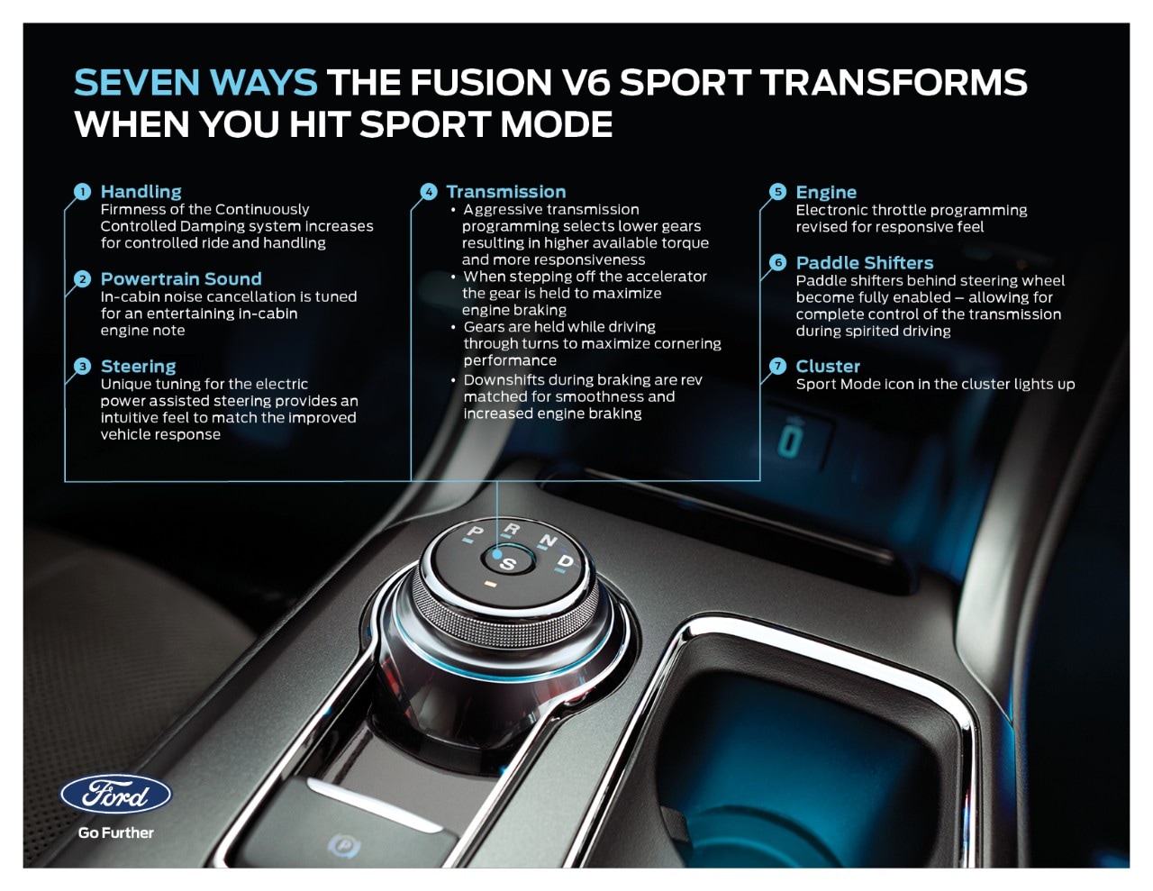 Here’s a rundown of the seven ways in which Ford Fusion V6 Sport transforms into an all-out sports sedan: