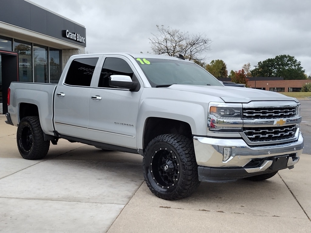 2016 Chevrolet Silverado 1500 LTZ Silver Ice Metallic 4WD Leather Interior, Power Front Seats, Cruise Control, Dual Heat/Air, AM/FM Radio, Power Windows, Power Locks, Tow Package, Aftermarket Rims/Aggressive All-Terrain Tires.