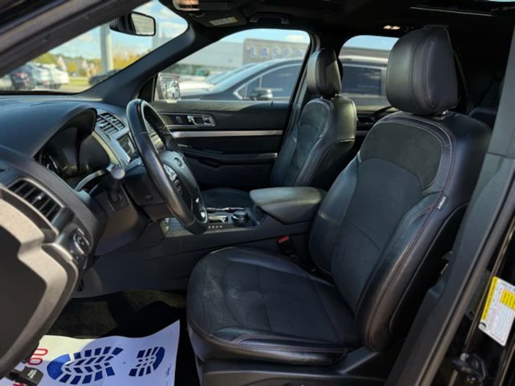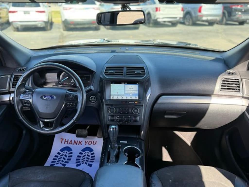 Certified. 2018 Ford Explorer XLT Shadow Black 4WD 2.3L I4 EcoBoost Local Trade In, 4WD, 2 Driver Configurable 4.2" Color LCD Displays, 2nd Row Bucket Seats, 3.65 Axle Ratio, 3rd row seats: split-bench, 4-Wheel Disc Brakes, 6 Speakers, ABS brakes, Air Conditioning, Alloy wheels, AM/FM radio: SiriusXM, AM/FM Stereo, Auto-Dimming Rear-View Mirror, Black Roof Rack Side Rails, Brake assist, Bumpers: body-color, Comfort Package, Compass, Delay-off headlights, Driver Connect Package, Driver door bin, Driver vanity mirror, Dual front impact airbags, Dual front side impact airbags, Dual-Zone Electronic Automatic Temperature Ctrl, Ebony Black Unique Door-Trim Panel Insert, Electronic Stability Control, Emergency communication system: 911 Assist, Equipment Group 202A, EXPLORER Badge on Hood, EXPLORER Unique Branded Front Floor Mats, Exterior Parking Camera Rear, Forward Sensing System, Four wheel independent suspension, Front anti-roll bar, Front Bucket Seats, Front Center Armrest, Front reading lights, Fully automatic headlights, Heated door mirrors, Heated Steering Wheel, Illuminated entry, Knee airbag, Leather Heated Bucket Seats, Leather steering wheel, Leather-Trimmed Bucket Seats, LED Fog Lamps, Low tire pressure warning, Lower Bodyside Cladding Insert, Lower Door Trim, Lower Front & Rear Bumper Covers, Magnetic Met-Painted Grille Bars w/Mesh Insert, Occupant sensing airbag, Outside temperature display, Overhead airbag, Overhead console, Panic alarm, Passenger door bin, Passenger vanity mirror, Power & Heated Glass Sideview Mirrors, Power door mirrors, Power driver seat, Power Liftgate, Power passenger seat, Power steering, Power windows, Radio: AM/FM Stereo w/7 Speakers, Rear air conditioning, Rear anti-roll bar, Rear Bumper Step Pad, Rear Parking Sensors, Rear reading lights, Rear seat center armrest, Rear window defroster, Rear window wiper, Remote keyless entry, Remote Start System, Roof rack: rails only, Security system, Sideview Mirror Caps, Single-CD Player, Speed control, Speed-sensing steering, Speed-Sensitive Wipers, Split folding rear seat, Spoiler, Steering wheel mounted audio controls, SYNC 3 Communications & Entertainment System, SYNC Communication & Entertainment System, SYNC Connect, Tachometer, Telescoping steering wheel, Tilt steering wheel, Traction control, Trip computer, Twin Panel Moonroof, Universal Garage Door Opener (UGDO), Variably intermittent wipers, Voice-Activated Touchscreen Navigation System, Wheels: 18" 5-Split-Spoke Sparkle Silver-Painted, Wheels: 20" x 8.5" Magnetic Met Painted 10-Spoke, XLT Appearance Package, XLT Technology Feature Bundle.