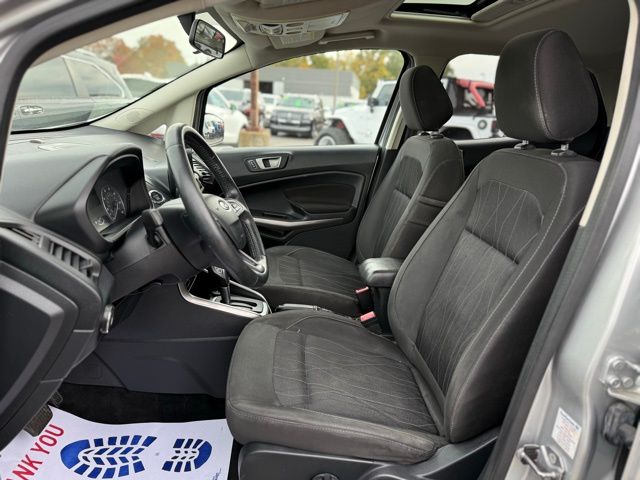 Powered by an EcoBoost 1.0-liter I3 turbocharged engine and front-wheel drive, this EcoSport delivers peppy performance and impressive fuel efficiencyup to 29 MPG highway. The responsive automatic transmission and 3.44 axle ratio make it smooth and capable whether youre navigating Fenton city streets or commuting across Flint and Grand Blanc. Sleek body-color bumpers, 16-inch shadow silver aluminum wheels, and a power moonroof give this compact SUV a modern, sporty look that fits perfectly with an active Michigan lifestyle.
