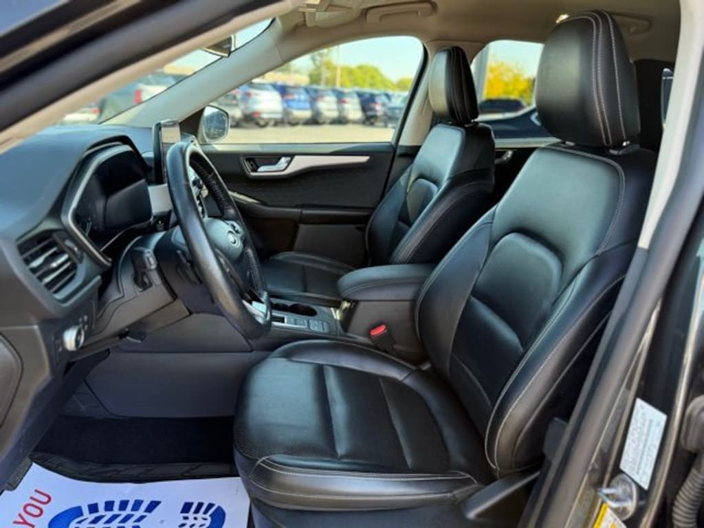 Certified. 2020 Ford Escape SEL Magnetic AWD EcoBoost 2.0L I4 GTDi DOHC Turbocharged VCT Accident Free CARFAX History Report, Local Trade In, AWD, 18" Machined-Face Aluminum Wheels, 3.81 axle ratio, 4-Wheel Disc Brakes, 6 Speakers, ABS brakes, Adaptive Cruise Control w/Stop-and-Go, Air Conditioning, Alloy wheels, AM/FM radio: SiriusXM, AM/FM Stereo, Auto High-beam Headlights, Automatic temperature control, Brake assist, Bumpers: body-color, Compass, Delay-off headlights, Driver door bin, Driver vanity mirror, Dual front impact airbags, Dual front side impact airbags, Electronic Stability Control, Emergency communication system: SYNC 3 911 Assist, Equipment Group 301A, Exterior Parking Camera Rear, Ford Co-Pilot360 Assist, FordPass Connect, Four wheel independent suspension, Front anti-roll bar, Front Bucket Seats, Front Center Armrest, Front fog lights, Front reading lights, Fully automatic headlights, Heated ActiveX Front Sport Contour Bucket Seats, Heated door mirrors, Heated front seats, Heated steering wheel, Illuminated entry, Knee airbag, Leather steering wheel, Low tire pressure warning, Memory seat, Occupant sensing airbag, Outside temperature display, Overhead airbag, Overhead console, Panic alarm, Passenger door bin, Passenger vanity mirror, Power door mirrors, Power driver seat, Power Liftgate, Power steering, Power windows, Radio data system, Rear anti-roll bar, Rear reading lights, Rear seat center armrest, Rear window defroster, Rear window wiper, Remote keyless entry, Speed control, Speed-sensing steering, Speed-Sensitive Wipers, Split folding rear seat, Spoiler, Steering wheel mounted audio controls, SYNC 3 Communications & Entertainment System, Tachometer, Telescoping steering wheel, Tilt steering wheel, Traction control, Trip computer, Variably intermittent wipers, Voice-Activated Touchscreen Navigation System.