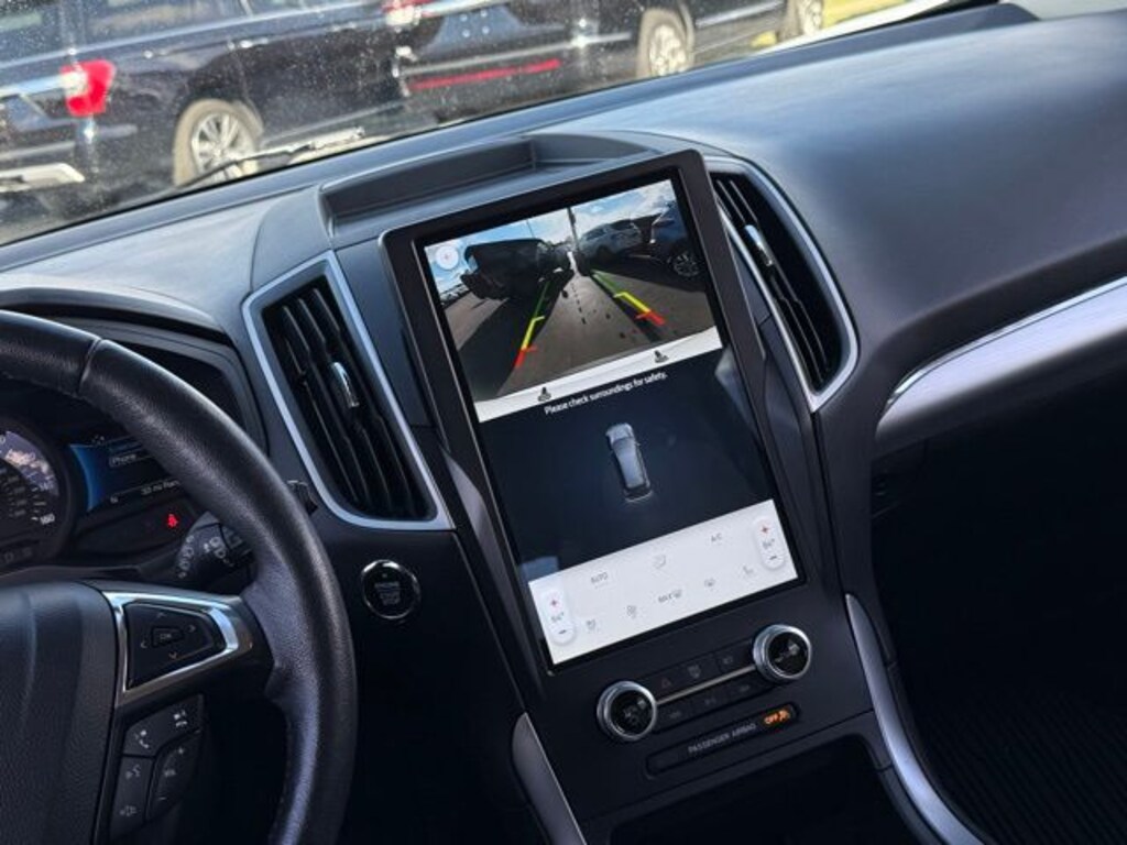 Inside, the cabin blends comfort and convenience. Heated front seats, dual-zone automatic climate control, and a leatherette interior create an inviting atmosphere. The driver-focused cockpit includes steering-wheel audio controls, remote keyless entry, and a host of advanced safety and tech features like rear parking sensors, auto high-beam headlights, and Fords latest voice-enabled infotainment system with wireless charging. With its spacious rear seating and split-folding rear bench, the Edge SEL offers flexibility for passengers, cargo and everything in between.