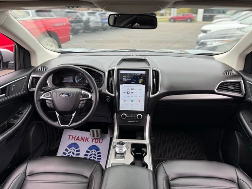 Certified. 2024 Ford Edge SEL Iconic Silver Metallic AWD EcoBoost 2.0L I4 GTDi DOHC Turbocharged VCT Accident Free CARFAX History Report, Local Trade In, AWD, 110V/150W AC Power Outlet, 3.80 Axle Ratio, 4-Wheel Disc Brakes, 6 Speakers, ABS brakes, ActiveX Trimmed Heated Bucket Seats, Air Conditioning, Alloy wheels, AM/FM radio: SiriusXM with 360L, AM/FM Stereo, Auto High-beam Headlights, Auto-dimming Rear-View mirror, Automatic temperature control, Brake assist, Bumpers: body-color, Compass, Convenience Package, Delay-off headlights, Driver door bin, Driver vanity mirror, Dual front impact airbags, Dual front side impact airbags, Electronic Stability Control, Emergency communication system: SYNC 4 911 Assist, Equipment Group 201A, Fog Lamps w/Iconic Silver Bezel, FordPass Connect, Four wheel independent suspension, Front & Rear Floor Liners w/Carpet Mats, Front anti-roll bar, Front Bucket Seats, Front Center Armrest w/Storage, Front dual zone A/C, Front reading lights, Fully automatic headlights, Heated door mirrors, Heated front seats, Heated Steering Wheel, Illuminated entry, Knee airbag, Leather steering wheel, Leather-Wrapped Steering Wheel, Low tire pressure warning, Occupant sensing airbag, Outside temperature display, Overhead airbag, Overhead console, Panic alarm, Panoramic Vista Roof, Passenger door bin, Passenger vanity mirror, Perimeter Alarm, Power door mirrors, Power driver seat, Power Liftgate, Power passenger seat, Power steering, Power windows, Rear anti-roll bar, Rear Parking Sensors, Rear reading lights, Rear seat center armrest, Rear window defroster, Rear window wiper, Remote keyless entry, Remote Start System, SiriusXM w/360L, Speed control, Speed-Sensitive Wipers, Split folding rear seat, Spoiler, Steering wheel mounted audio controls, SYNC 4A w/Enhanced Voice Recognition, Tachometer, Telescoping steering wheel, Tilt steering wheel, Traction control, Trip computer, Universal Garage Door Opener (UGDO), Variably intermittent wipers, Wheels: 18" Bright-Machined Aluminum, Wheels: 18" Sparkle Silver-Painted Aluminum, Wireless Charging Pad.