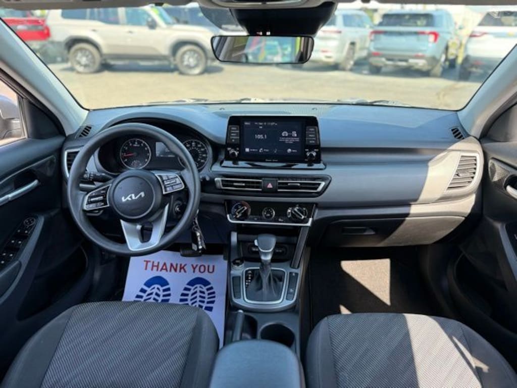 Certified. 2023 Kia Seltos LX Steel Gray AWD 2.0L I4 MPI Accident Free CARFAX History Report, Local Trade In, 4-Wheel Disc Brakes, 6 Speakers, 6.052 Axle Ratio, ABS brakes, Air Conditioning, Alloy wheels, AM/FM radio, Apple CarPlay & Android Auto, Auto High-beam Headlights, Brake assist, Bumpers: body-color, Carpet Floor Mats, Cloth Seat Trim, Delay-off headlights, Driver door bin, Driver vanity mirror, Dual front impact airbags, Dual front side impact airbags, Electronic Stability Control, Exterior Parking Camera Rear, Four wheel independent suspension, Front anti-roll bar, Front Bucket Seats, Front Center Armrest, Front reading lights, Fully automatic headlights, Illuminated entry, Low tire pressure warning, Mud Guards, Occupant sensing airbag, Outside temperature display, Overhead airbag, Overhead console, Panic alarm, Passenger door bin, Passenger vanity mirror, Power door mirrors, Power steering, Power windows, Radio: AM/FM/MP3 Display Audio, Rear window defroster, Rear window wiper, Remote keyless entry, Security system, Speed control, Speed-sensing steering, Split folding rear seat, Spoiler, Steering wheel mounted audio controls, Tachometer, Telescoping steering wheel, Tilt steering wheel, Traction control, Trip computer, Variably intermittent wipers, Wheels: 17" Alloy w/Dark Gray Finish.