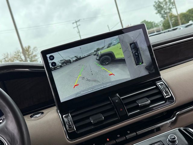 Inside, the Navigator surrounds you with Sandstone leather-trimmed soft-touch heated and ventilated comfort seats, heated rear seats, heated steering wheel, and tri-zone automatic climate control. The spacious interior features genuine wood trim, memory seating, power-folding third row, and a power tilt-and-telescoping steering column. Technology highlights include SYNC 4 with voice-activated navigation, Revel 14-speaker audio system, Apple CarPlay and Android Auto, Connected Navigation (1-year trial), SiriusXM 360L, and garage-door transmitter.