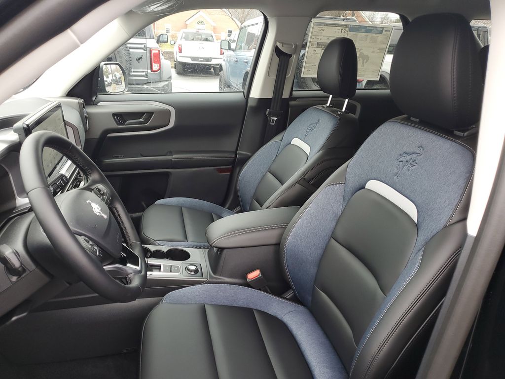 The Outer Banks trim elevates the Bronco Sport with LED signature lighting, body-color exterior accents, black roof-rail side rails, and refined design details that give it a polished, upscale presence. Inside, the cabin is designed for comfort and convenience, featuring premium materials, a leather-wrapped heated steering wheel, power-adjustable front seating, dual-zone automatic climate control, and smart storage solutions that make everyday driving effortless.