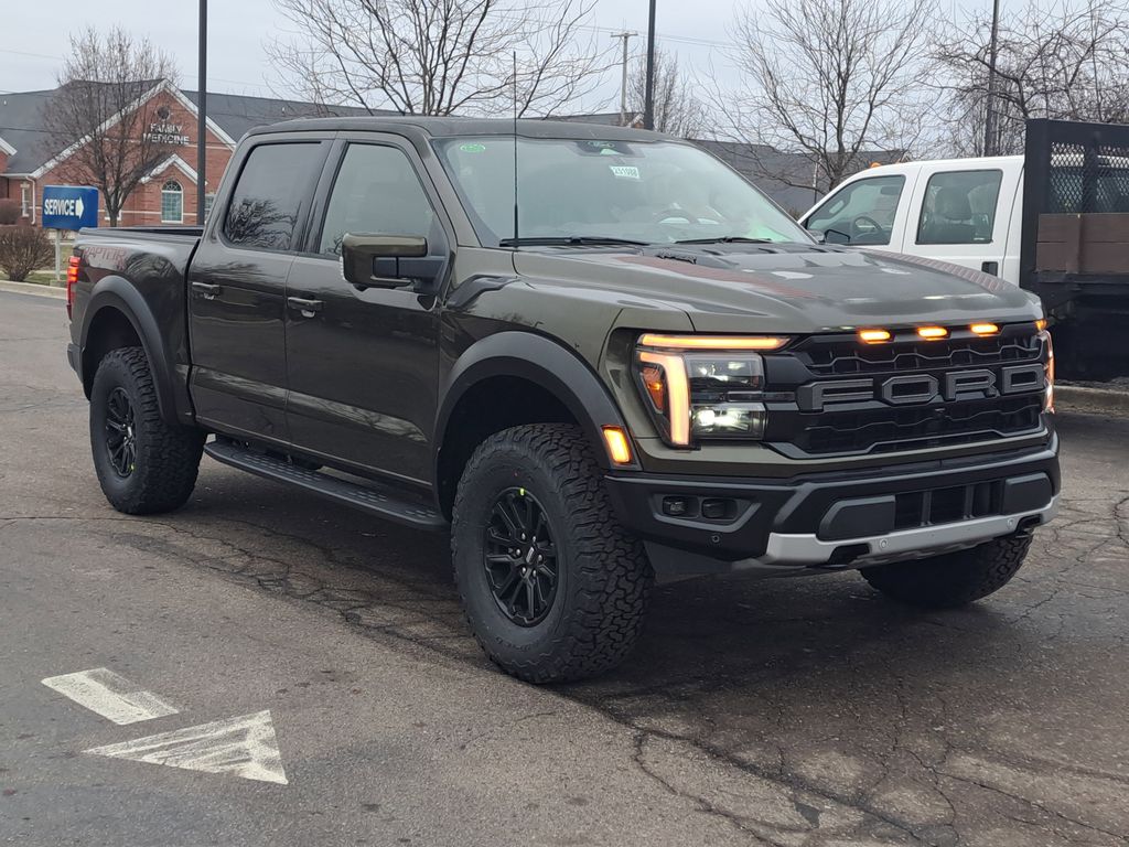 This 2025 Ford F-150 Raptor 4x4 SuperCrew, Stock #251088, VIN: 1FTFW1RG9SFC53431, is built to dominate Michigan roads, backcountry trails, and everything in between. Finished in the aggressive Shelter Green with a Black leather bucket seat interior, this Raptor delivers unmistakable Ford Performance attitude with real-world capability for drivers in Fenton, Brighton, Hartland, Howell, Grand Blanc, and throughout Metro Detroit.