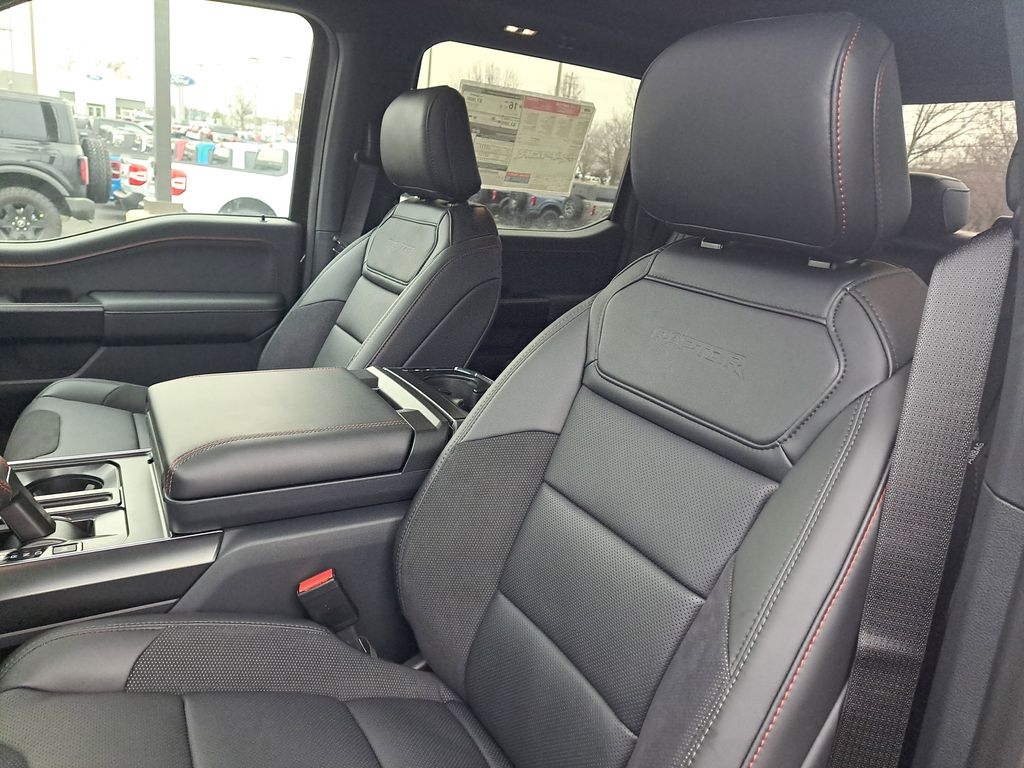 Inside, the cabin blends premium comfort with race-inspired design. A massive 12-inch productivity touchscreen with SYNC 4, 360-degree camera, head-up display, and a fully digital driver interface keep you connected and informed. Heated front and second-row seats, dual-zone automatic climate control, and distinctive Raptor interior accents make every drive comfortablewhether youre commuting through Flint or heading north for the weekend.