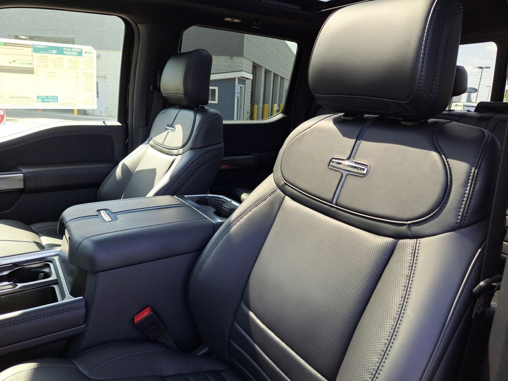 The Platinum trim blends rugged durability with refined comfort. The interior, finished in Black Onyx with Platinum Blue leather, surrounds the driver with advanced technology including a 12-inch digital touchscreen, B&O Unleashed sound system, Head-Up Display, SYNC 4, and 360-degree camera. Power running boards, adaptive cruise control, and intelligent access with push-button start ensure that every drive feels premium, whether navigating a Michigan worksite or crossing state lines.