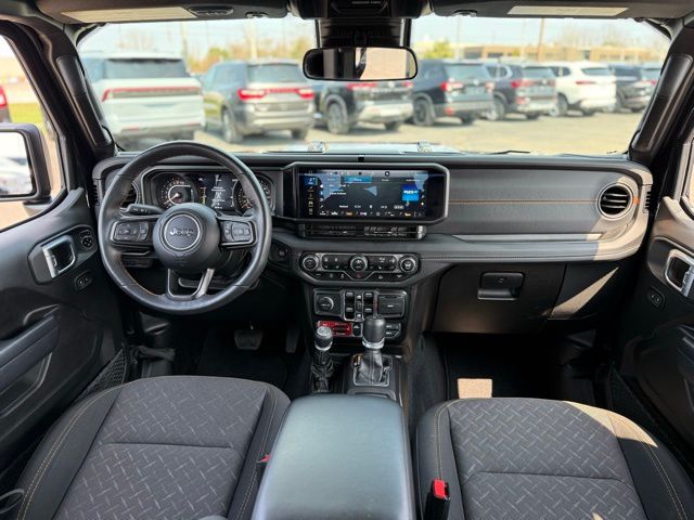 The exterior of this Gladiator Mojave exudes a rugged and confident presence, thanks to its bold Black paint and striking design elements. Step inside, and you'll be greeted by a premium cabin that's been thoughtfully crafted to provide both comfort and convenience. From the heated front seats to the Uconnect 5 infotainment system, every detail has been designed to enhance your driving experience.