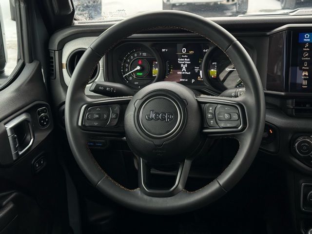 Step inside and discover the comfort and convenience of this well-equipped Wrangler. Dual-zone climate control, a 12.3-inch Uconnect 5 display, and an impressive 8-speaker audio system create a refined driving environment. The Sport Suspension and 4-wheel drive system ensure exceptional on- and off-road performance, while the ParkView Rear Back-Up Camera and a host of advanced safety technologies provide added peace of mind.
